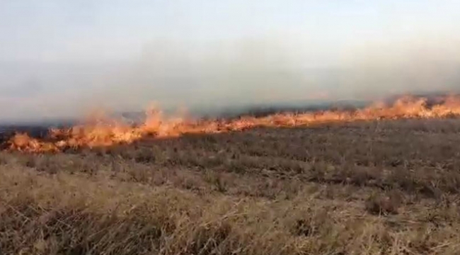 Tekirdağ’ın Malkara ilçesinde çıkan yangında anız ve çataklık alan alev alev yandı.