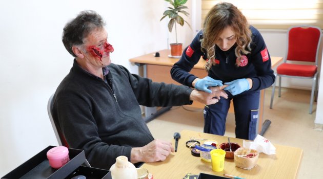 112 tatbikatlarının vazgeçilmez 'makyaj ustası'