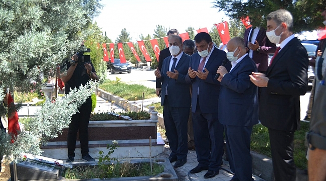 Malatya’da 15 Temmuz darbe girişiminin 5. yıl dönümü nedeniyle, protokol üyeleri şehitlerin kabirlerini ziyaret ederek, karanfil bıraktı.