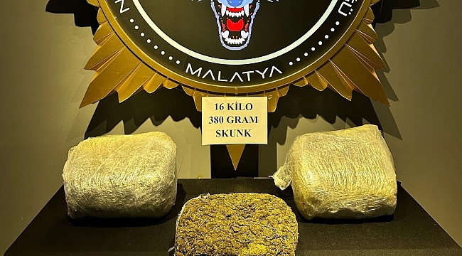 Malatya'da şüphe üzerine durdurulan bir araçta 16 kilo 380 gram skunk ele geçirildi, 3 kişi tutuklandı.