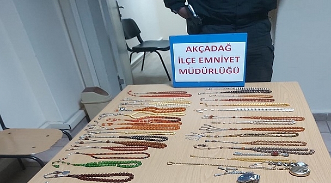 Malatya'nın Akçadağ ilçesi'nde  200 bin TL değerindeki tesbih hırsızlığı olayı polis ekiplerinin titiz çalışması sonucunda güvenlik kamerası kayıtları izlenerek çözüldü.
