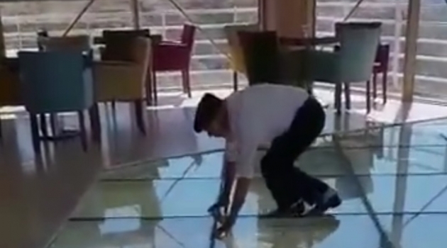 Malatya'da stres atmak için 240 metre yüksekliğindeki seyir terasına çıkan ve bir anda yükseklik korkusu tutan yaşlı adamın emekleyerek yürümesi, sosyal medyada izlenme rekorları kırdı.