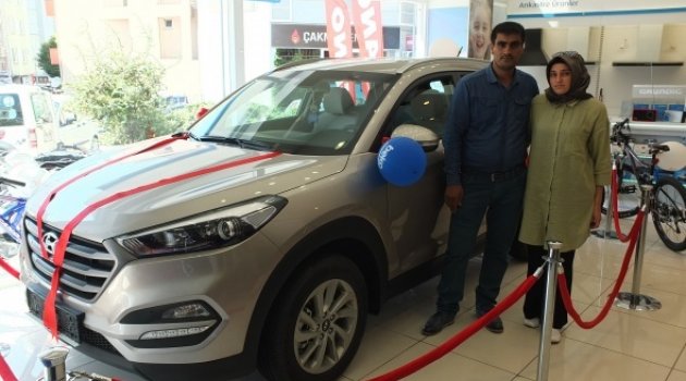 Daha sonra mağaza sahiplerinden Emin Turgut, talihli aileye araçlarının anahtarlarını teslim etti.