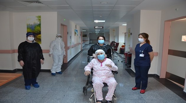 Malatya’da 77 yaşındaki kadın hasta Covid-19’u yenerek alkışlarla taburcu edildi.