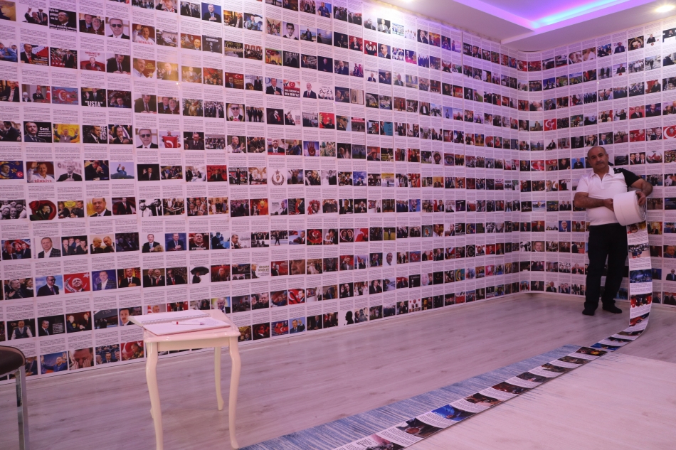 Malatyalı şair Nusret Başyiğit, 8 buçuk yılda vatan sevgisiyle yazdığı 22 bin 184 mısradan oluşan 2 bin 23 şiiri evinin salonunda sergiliyor. Başyiğit’in Cumhurbaşkanı Recep Tayyip Erdoğan’a olan hayranlığıysa eşini bile kıskandırıyor.