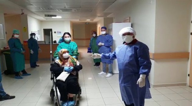 96 yaşındaki Emine Coşkun, hastalığı yenmenin mutluluğunu yaşadığını belirterek, “Rabbime çok şükür. Benimle ilgilenen doktor hanıma da benden virüs bulaşmış o da çok şükür sağlığına kavuşmuş. Hastanede doktorlarımız, hemşirelerimiz ve hasta bakıcılarımızdan çok memnun kaldım. Hepsinden bütün çalışanlardan Allah razı olsun” diyerek taburcu oldu.