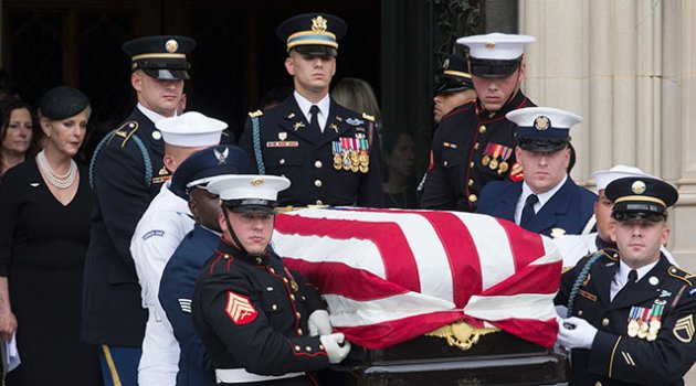 Geçtiğimiz hafta, kanser hastalığı sonucu hayatını kaybeden Amerika Birleşik Devletleri’nin Arizona eyaletinin eski senatörü John McCain için cenaze töreni düzenlendi. Washington’da bulunan Ulusal Katedral'de düzenlenen törende ABD eski başkanları Bill Clinton, George W.Bush, Barack Obama da hazır bulundu. Eski senatör McCain'in vasiyeti üzerine cenaze töreninde ABD'nin eski başkanları Barack Obama ve George W. Bush birer konuşma yaptı. Törene ayrıca ABD Başkan Yardımcılığı yapmış Joe Biden, oyuncu Warren Beatty, New York eski Belediye başkanı Michael Blumberg, Demokrat Parti’li senatör Sheldon Whitehouse gibi isimler de katıldı.