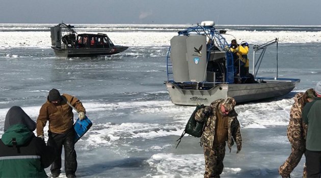 ABD'nin Ohio eyaletinin Ottawa kentinde balık tutmak için açıldıkları Erie Gölü'ndeki buz kitlelerinin kırılmasıyla 46 balıkçı mahsur kalmıştı.
