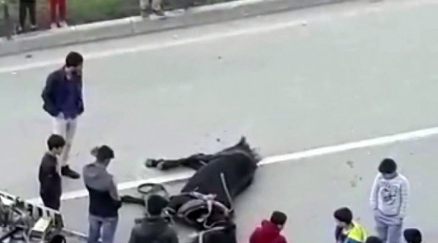 Atın yorgunluktan düştüğü konuşmalara yansıdı. Cep telefonuna yansıyan görüntü hayvan severlerin tepkisine neden oldu.