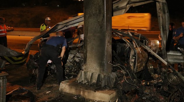 Adana’da otoyolda direksiyon hakimiyetini kaybeden otomobil bariyerlere çarptı, ardından araç yanmaya başladı. İtfaiye ekipleri yangını kısa sürede söndürürken sürücünün öldüğü belirlendi.