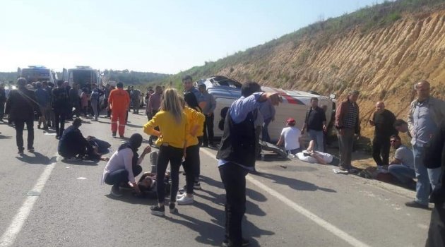 Adana'da seçim midibüsü devrildi: 15 yaralı