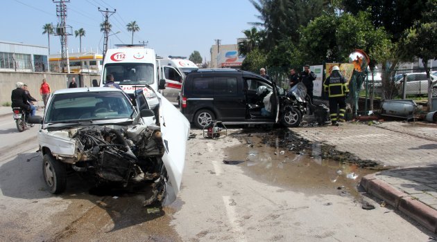 Adana'da iki aracın kafa kafaya çarpışması sonucu 1'i kadın 3 kişi yaralandı.