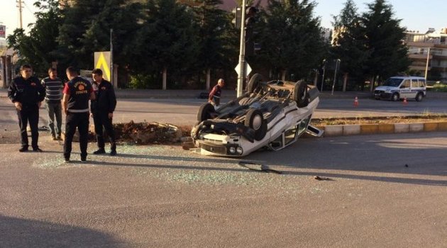 Adıyaman’da, bir kavşak içerisinde çarpışan iki otomobilinden biri taklalar atarak ters döndü. Kazada her iki otomobil sürücüsü yaralandı.