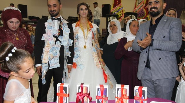 Mardin’in Kızıltepe ilçesinde Ertaş ve Ece aşiretinin düğününde gelin ile damada 100 bin lira değerinde altın ve on binlerce lira takıldı.