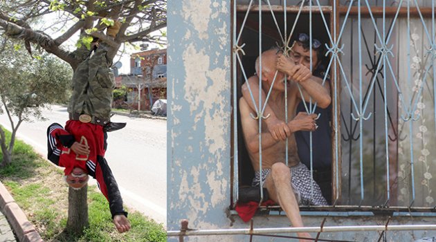 Ağaca baş aşağı asılan yaşlı adam bu kez polisi alarma geçirdi