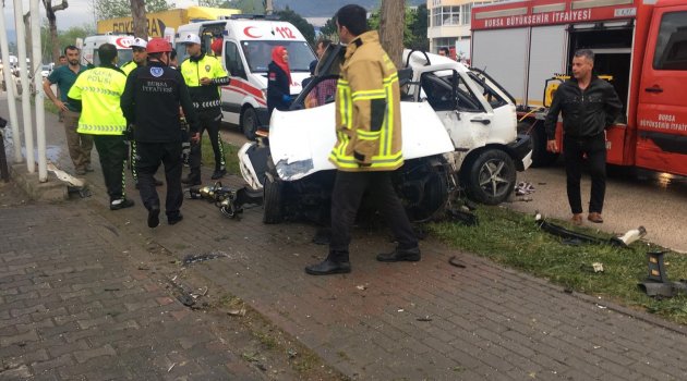 Bursa'nın Kestel ilçesinde ağaca çarpan otomobil sürücüsü, hurdaya dönen otomobilinde hayatını kaybetti.