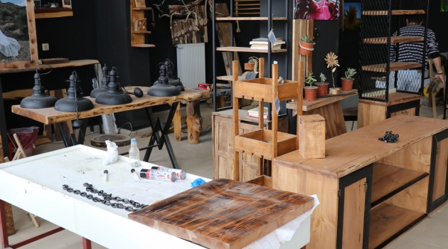 Evlerde kullanılmayan metal parçaları ahşaplarla buluşturarak müşterinin isteğine göre tasarım yaptıklarını ifade eden Soyak, hedefinin ise daha büyük bir atölye olduğunu dile getirdi.