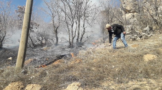 Ağaçlık alandaki yangına vatandaşlar müdahale etti