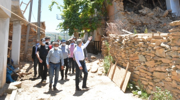 AFAD ile Çevre ve Şehircilik İl Müdürlüğü ekiplerinin bölgedeki hasar tespit çalışması devam ediyor.