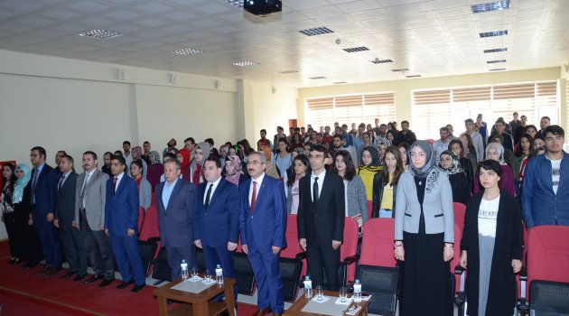 Konferans salonunda düzenlenen tören, saygı duruşu ve İstiklal Marşı’nın okunmasıyla başladı.