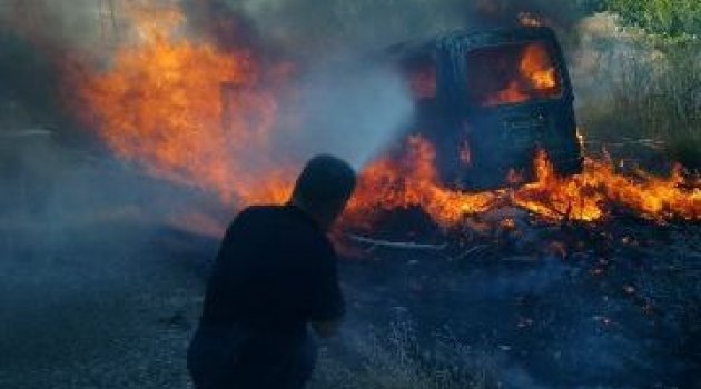 Kazada 5 kişi yaralanırken yanan araç küle döndü. İhbar üzerine olay yerine polis,sağlık ve itfaiye ekipleri sevk edildi.