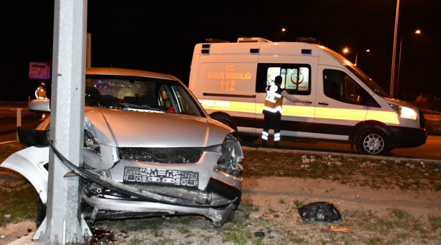 Kaza, Aksaray - Ankara Karayolu TOKİ Yol Kavşağında meydana geldi. Edinilen bilgiye göre, yabancı uyruklu Muhammed M. (38) idaresindeki 31 ADC 251 plakalı otomobil, tali yoldan ana yola çıkmak isteyen Barış K. (35) yönetimindeki 68 EY 470 plakalı otomobile çarpıp, orta refüjdeki direğe vurarak durabildi. Kazada sürücü Muhammet M. ile araçta yolcu olarak bulunan Ayet A. (22) yaralandı.