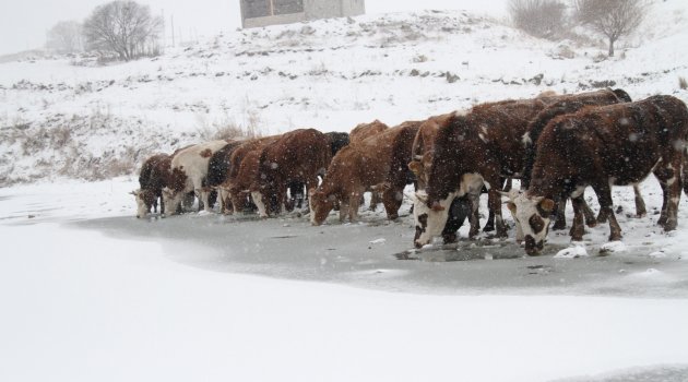 Doğu Anadolu Bölgesi'nde etkili olan Sibirya soğukları hayatı olumsuz etkilerken, yaban hayatını da etkiledi. Büyük bölümü buzla kaplanan gölde suyun keyfini çıkaran yaban ördekleri, görenlerin ilgisini çekti.