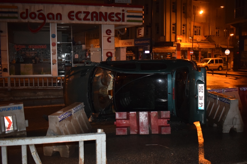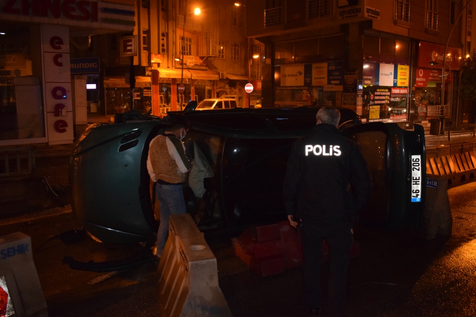Edinilen bilgilere göre, Bayraktar İ. idaresindeki 46 HE 206 plakalı Peugeot marka otomobil sürücüsünün direksiyon hakimiyetini kaybetmesiyle kontrolden çıkarak yan yattı. Sürücünün yara almadığı kazada araçta maddi hasar oluştu. İhbar üzerine olay yerine polis ekipleri sevk edilirken, ehliyetine daha önce alkollü araç kullanmaktan el konulduğu öğrenilen sürücünün 2.0 promil alkollü olduğu belirlendi.