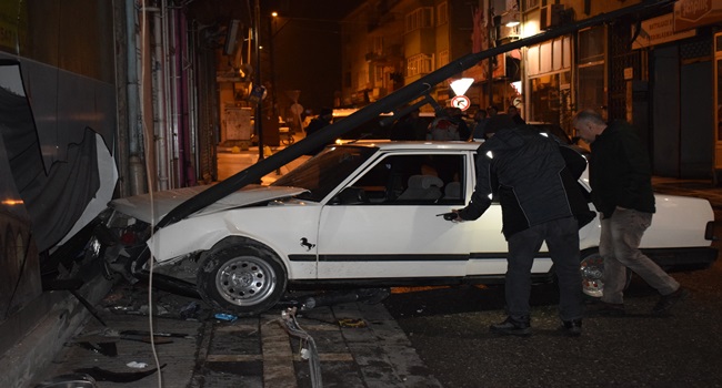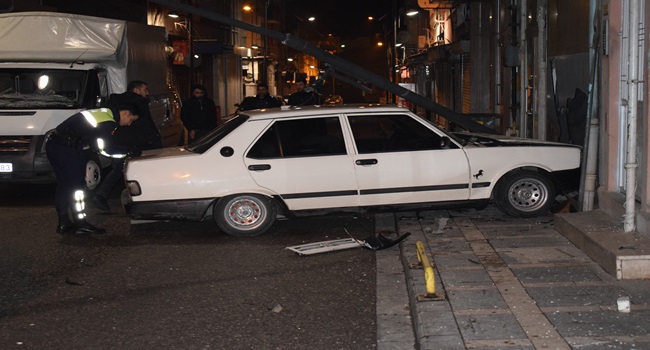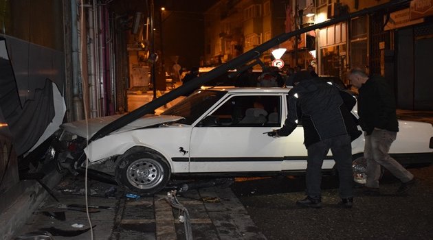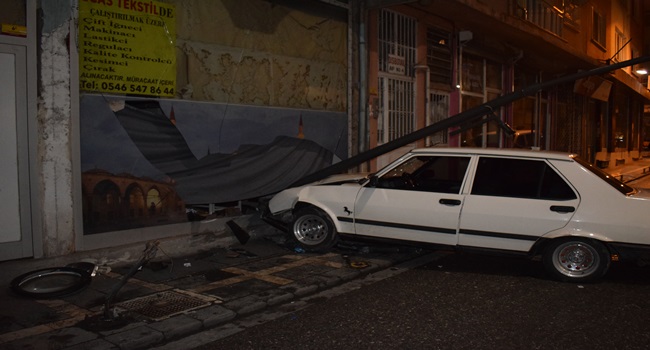 Malatya'da alkollü olduğu ileri sürülen sürücü elektrik direğine çarptıktan sonra işyerine daldı.
