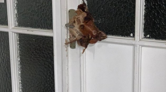 Almanya’nın Vaihingen Enz kentinde bir caminin kapısına domuz kafası asıldı.