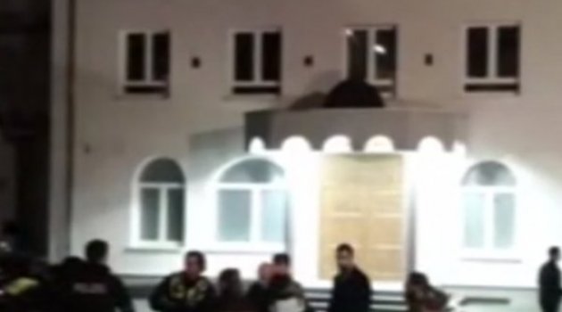 Öte yandan güvenlik kamerasına yansıyan görüntülerde maskeli 3 kişinin camiye ellerindeki taşlarla saldırdığı ardından koşarak uzaklaştığı görülüyor.