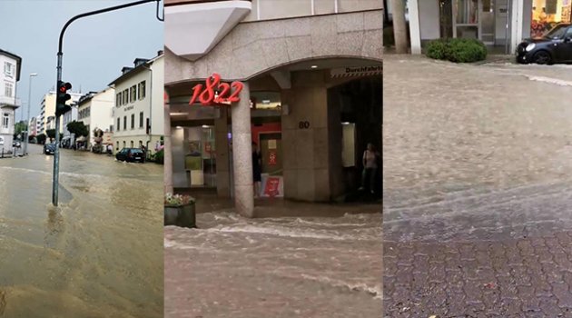 Almanya'da yer yer 37 dereceye kadar çıkan çöl sıcakları yerini şiddetli yağışlara bıraktı. Ülkenin farklı bölgelerinde meydana gelen yağışlar nedeni ile cadde ve sokaklar göle döndü.