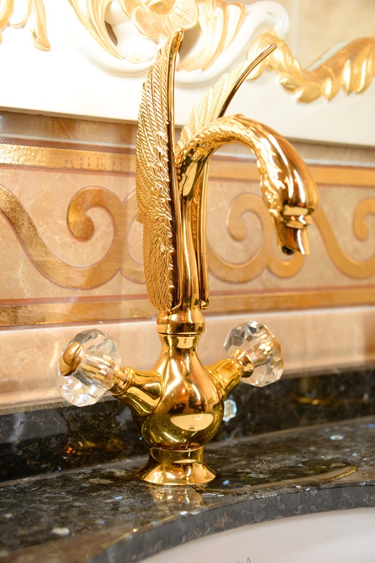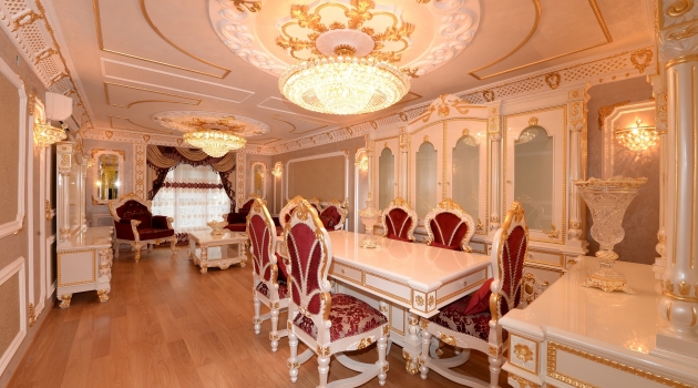Görenlerin ‘saray’ diye adlandırdığı apartmanın her dairesinde musluklar ve kapı kulpları 24 ayar altın kaplamadan oluşuyor. Duvar süslemeleri ve mobilyaları da altın varaktan olan yapıdaki işlemlerde bir ressam titizliğiyle çalışılmış olması ise görenlerin ağzını açık bırakıyor. İçindeki eşyalardan dekorasyonuna kadar her şeyi el yapımı olan mimaride diğer yapılardan 100 kat daha pahalı ve dayanıklı malzeme kullanıldı.