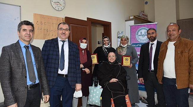Ziyarettin ardından Din görevlisi Betül Doğan ve Sevim Çancı’ya Kent Konseyi Engelliler Çalışma Grubu Temsilcisi Naile Altuntaş tarafından plaket takdimi ve hediye verildi.