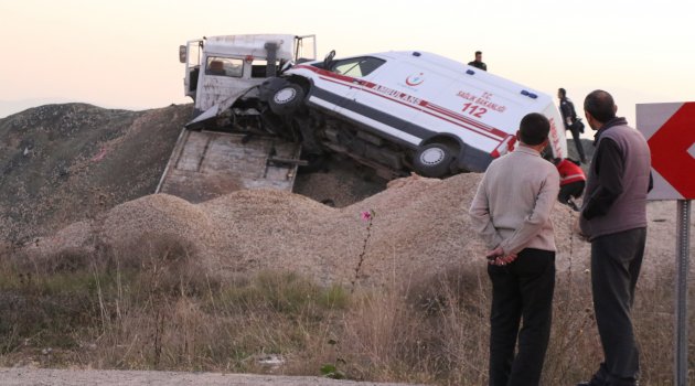 Ambulans taşıyan çekici yol kenarına uçtu: 1 yaralı