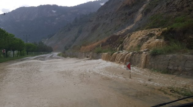 Sağanak yağış nedeniyle dağ yamaçlarından Karabük-Yenice Karayolu’na akan sular sürücüleri tedirgin ederken heyelan riskini arttırdı.