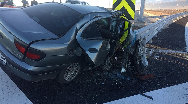 Niğde-Ankara yeni otoyolu Çiftlik ilçe çıkışında otomobil refüje çarptı. Kazada 2 kişi hayatını kaybetti.