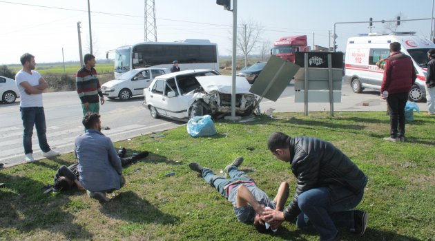 Çarpmanın şiddetiyle trafik sinyalizasyon direğine çarparak durabilen 07 LM 982 plakalı otomobilin sürücüsü Bayram E. ve araçta yolcu olarak bulunan Esat A. hurdaya dönen araçtan vatandaşlar tarafından çıkarılarak refüje yatırıldı.