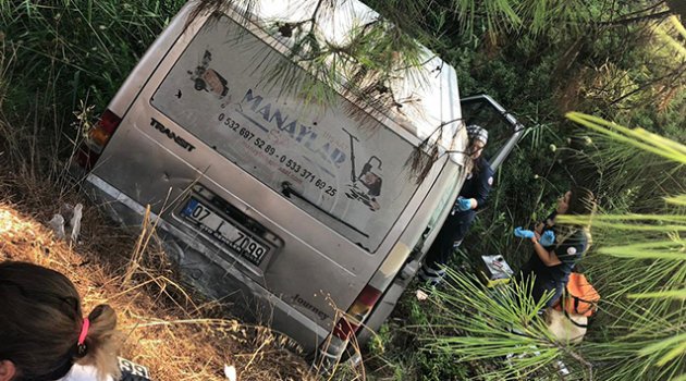 Antalya'da kontrolden çıkan ticari aracın ormanlık alana devrilmesi sonucu 4 kişi yaralandı.