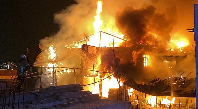 Bursa'da bir antikacı dükkanında çıkan yangına itfaiye ekipleri güçlükle müdahale ediyor. 2 katlı tarihi binayı tamamen saran alevler geceyi aydınlattı. Ahşap binanın yan duvarları bir süre önce yandaki inşaat sebebiyle yıkılmıştı.