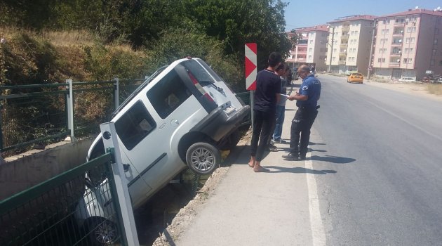 M.K.(40) idaresindeki hafif ticari araç yol kenarındaki Derme sulama kanalına düştü. Bariyerleri kırarak kanala düşen araçta bulunan sürücü ve yanındaki R.K. çevredekilerin yardımı ile araçtan çıkarıldı.