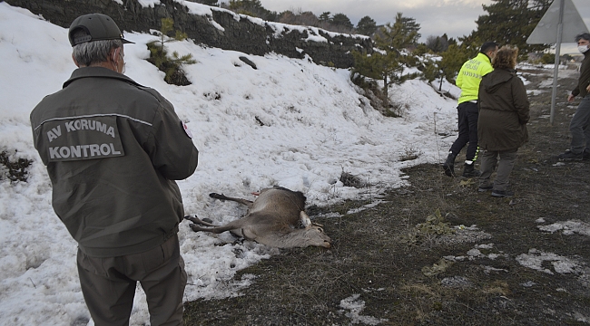 Kütahya'nın Tavşanlı ilçesinde bir aracın çarptığı geyik telef oldu.