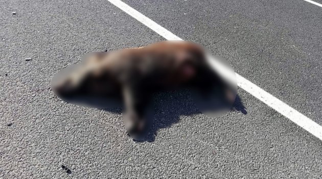 Aracın çarptığı yaban domuzu telef oldu