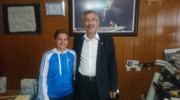 Maraton koşucusu Eda Kınacı'dan Arapgir Belediye Başkanı Haluk Cömertoğlu'na ziyaret.