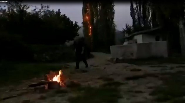 Pazarlar ilçesi Orhanlar köyünde bahçede iftar hazırlığı yapan ailenin 10 metre yakınına yıldırım düştü. Aile bireyleri olaydan kıl payı kurtulurken, düşen yıldırımın çıkardığı yangını vatandaşın cep telefonu kamerasına yansıdı.