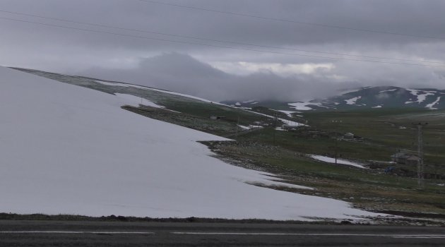 Ardahan-Şavşat karayolu üzerindeki deniz seviyesinden 2650 metre yükseklikteki Sahara Geçidi, dolu nedeniyle beyaz örtü ile kaplandı. Sürücüler, dolu nedeniyle karayolunda ilerlerken zorluk çekti.