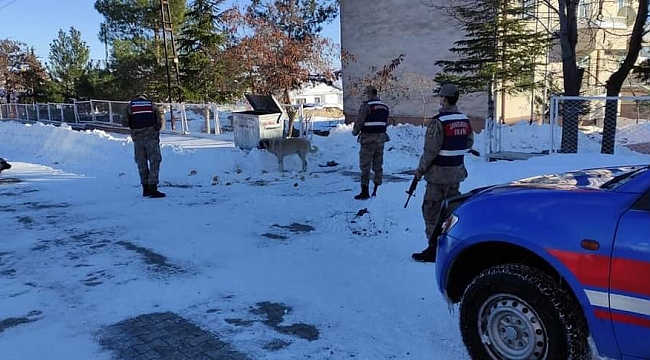 Malatya'nın Arguvan ilçesinde Jandarma ekipleri, yoğun kar yağışı nedeniyle yiyecek bulmakta zorluk çeken sokak hayvanlarını unutmadı.