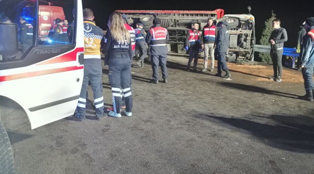 Arızalanan 2 otomobili taşıyan çekici devrildi: 2 ölü 6 yaralı