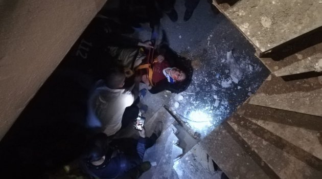 Asansör boşluğuna düşen kadını itfaiye kurtardı