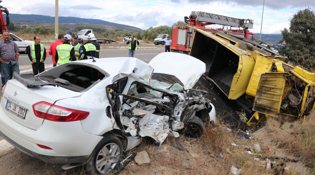Çarpışmanın etkisiyle asfalt yüklü kamyon yol kenarına devrildi. Kazada, kamyonda bulunan sürücü Şengönül ve yanında bulunan Kenan Özçelik ile otomobil sürücüsü Karadağ yaralandı. Hurdaya dönen otomobilde yolcu olan 21 yaşındaki Onur Zeray, olay yerinde yaşamını yitirdi.